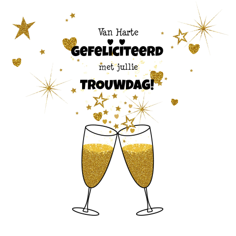 Trendy felicitatie trouwdag champagne gouden hartjes en sterren